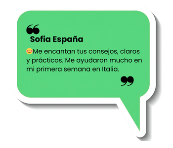 Cada historia y cada comentario me motivan a seguir creando contenido útil, práctico y real. Mi objetivo es que tú también tengas confianza y seguridad en tu vida en Italia, sin perder tiempo ni energía.